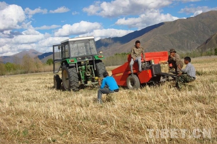 圖為西藏自治區(qū)農(nóng)牧科學(xué)院草業(yè)科學(xué)研究所科技人員正在開(kāi)展飼用燕麥青干草打捆試驗(yàn)示范