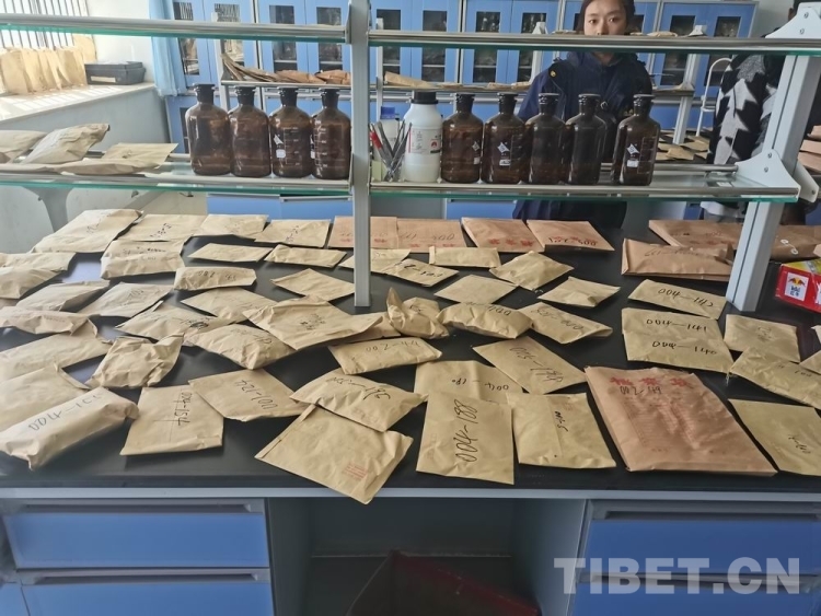 圖為西藏自治區(qū)農(nóng)牧科學(xué)院草業(yè)科學(xué)研究所科技人員將采集到的牧草種質(zhì)資源在實(shí)驗(yàn)室內(nèi)預(yù)處理