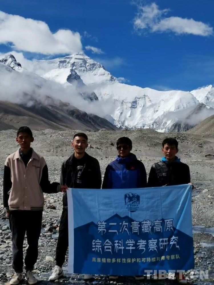 圖為西藏自治區(qū)農(nóng)牧科學(xué)院草業(yè)科學(xué)研究所科技人員在珠峰極高海拔區(qū)域開(kāi)展第二次青藏科考任務(wù)