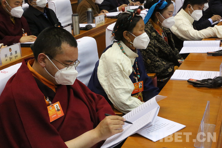 圖為嘎瑪澤登代表政協(xié)第十一屆西藏自治區(qū)委員會(huì)常務(wù)委員會(huì)向大會(huì)報(bào)告工作 攝影:王佳豪