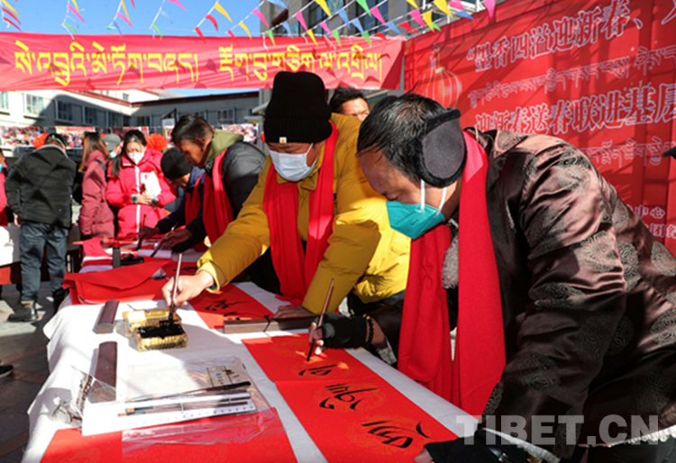 圖為活動現(xiàn)場書法家在書寫藏文春聯(lián)