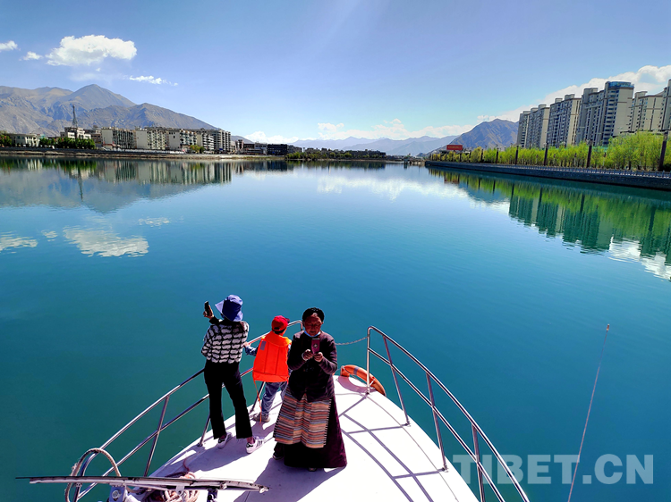 圖為拉薩河上市民、游客乘船觀景 攝影:次旦拉姆