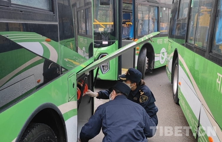圖為拉薩海關所屬聶拉木海關監(jiān)管驗放出口國產(chǎn)新能源公交車 由拉薩海關供圖
