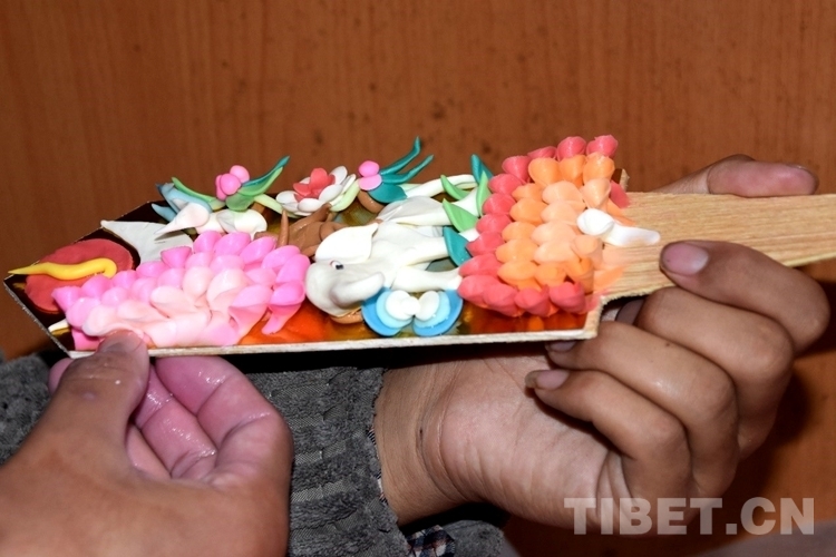 “酥油花手藝是我爸爸教給我的,然后我的弟弟、兒子的手藝是我教給他們的。去年年前一個(gè)月內(nèi),去掉其他開(kāi)銷(xiāo),我一個(gè)人賺了一萬(wàn)多?!彪m然這活累了點(diǎn)兒,但在農(nóng)閑期間能有這樣一筆收入,對(duì)旦增家來(lái)說(shuō)很可觀。