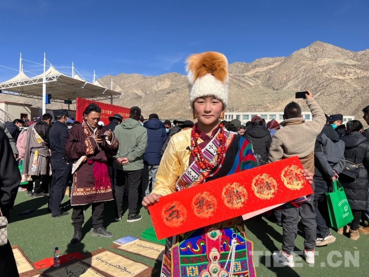 圖為群眾拿到寫(xiě)有“心想事成”字樣的書(shū)法作品 攝影:德吉卓瑪