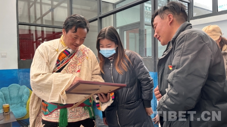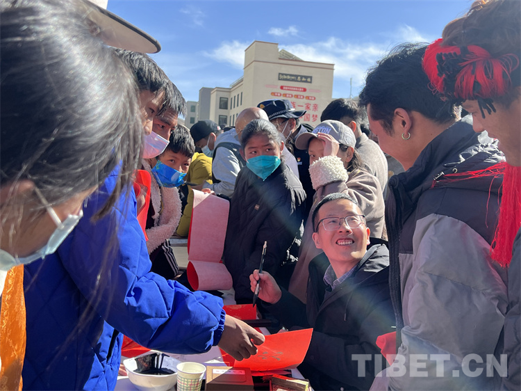 來到送“書法”現(xiàn)場,書法家們早早地來到活動現(xiàn)場,他們準備筆墨、鋪開紙張,為現(xiàn)場群眾書寫藏、漢文新年對聯(lián),“?!弊?、“吉祥如意”、“扎西德勒”等寓意美好的祝福。書法家協(xié)會副主席祖牛拉巴次仁說:“從春節(jié)開始,我們書法家們?nèi)W校、社區(qū)、搬遷安置點等地,書寫了超過1萬件的書法作品。這些作品深受大家的喜愛,我們后續(xù)也會繼續(xù)開展送‘書法’公益活動”?,F(xiàn)場群眾聚集在送“書法”現(xiàn)場,“西熱措姆”“張文青”“索朗旺青”“朗嘎達瓦”……孩子們爭先恐后請書法家把自己的名字寫在紅紙上?!斑@是我的名字,我爸是西寧人,我媽是那曲的,我們是從那曲安多縣搬遷過來的,我現(xiàn)在在森布日幸福中學上初三,將來要考那曲高級中學”張文青拿著書家贈給她的“名字”用流利的那曲話對記者說。