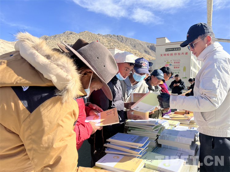 在送“書籍” 現(xiàn)場,《西藏文學》《西藏文藝》《邦錦梅朵》三個編輯部工作人員為現(xiàn)場群眾和當?shù)?span style="text-align: center; background-color: rgb(253,242,234)">干部贈送書籍,當?shù)厝罕姾蛯W生們紛紛前來翻看尋找自己喜歡的書籍,大家人手幾本書?!拔移綍r喜歡閱讀藏文文學作品,這次要了兩本文學相關(guān)書籍拿回家閱讀”17歲的益西巴珍說。據(jù)了解,此次活動西藏文聯(lián)向熱愛閱讀的群眾和學生共贈送1500本(冊)文藝書籍和期刊。