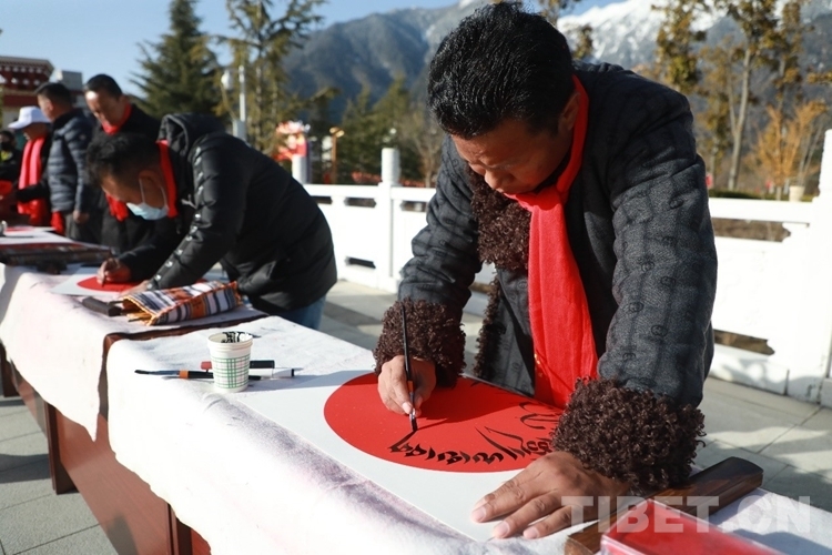 在林芝市藏醫(yī)院工作的巴桑次仁,是林芝市文聯(lián)書法家協(xié)會會員。當(dāng)天一大早,林芝市文聯(lián)書法家協(xié)會的各位書法家揮毫潑墨,不停地為群眾寫下新年祈福和愿望?,F(xiàn)場群眾簇?fù)碛^摩,與書法家們認(rèn)真交流,臉上不時揚起幸福的笑容。據(jù)悉,活動當(dāng)天,書法家協(xié)會共送出100余副春聯(lián)、150余幅字畫。