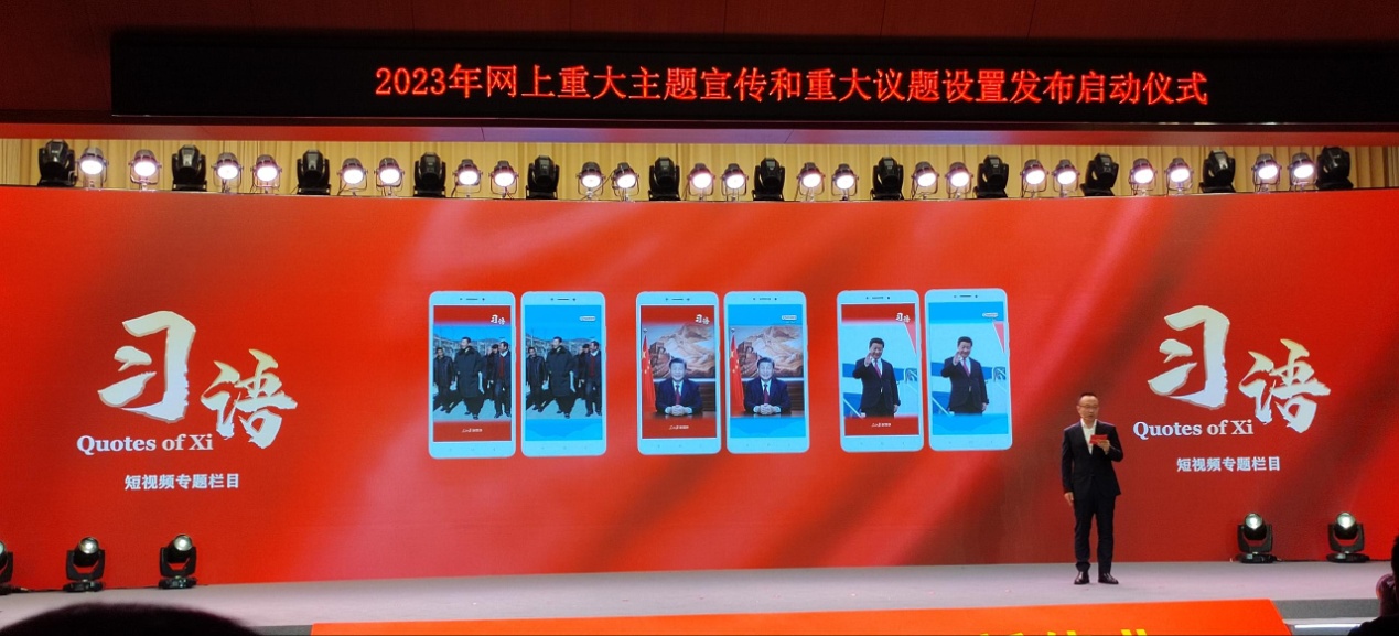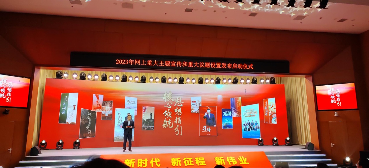 圖為“團(tuán)結(jié)奮進(jìn)新征程 奮楫揚(yáng)帆再出發(fā)”2023年網(wǎng)上重大主題宣傳和重大議題設(shè)置發(fā)布啟動(dòng)儀式主會(huì)場
