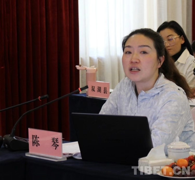 圖為中央廣播電視總臺(tái)駐西藏記者站黨委副書記、副召集人陳琴介紹融媒體相關(guān)情況