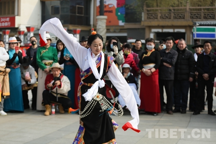 中國西藏網(wǎng)訊 3月21日,由新的社會(huì)階層人士服務(wù)團(tuán)三分團(tuán)主辦、北京藏地神韻非物質(zhì)文化傳播發(fā)展公司承辦的傳統(tǒng)藏舞公益推廣活動(dòng)在西安舉辦。多位藏舞傳承人與藏舞愛好者齊聚西安大唐西市進(jìn)行公益推廣交流。鍋莊、伊舞,《歡迎你們到來》《舞動(dòng)青春年華》《吉祥的哈達(dá)》……一曲接著一曲,舞出了藏族舞蹈的無限魅力?。ㄖ袊鞑鼐W(wǎng) 記者/呂靜 姚浩然)