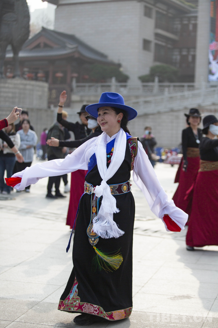 圖為大唐西市活動(dòng)現(xiàn)場 多杰尼瑪正在領(lǐng)舞 攝影:呂靜