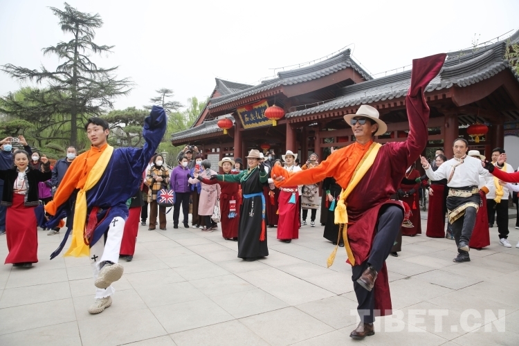 在大唐西市、興慶宮公園等地,沙多等多位藏舞推廣傳承人與西安當?shù)劐伹f舞團隊交流展演,現(xiàn)場氣氛熱烈。