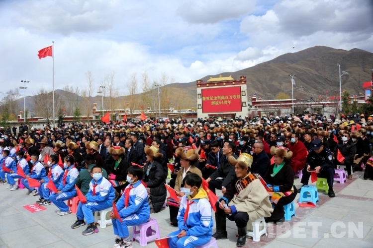 圖為各界代表和克松群眾慶祝西藏百萬(wàn)農(nóng)奴解放64周年 攝影:王佳豪