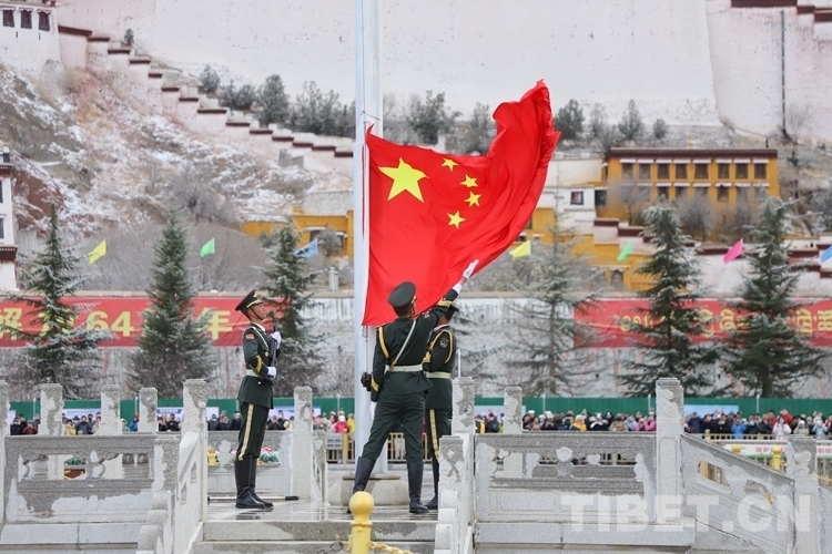 28日清晨,瑞雪洗禮拉薩,處處煥然一新,在干凈清新的氣息中,來自西藏各族各界的代表2000余人齊聚布達拉宮廣場,以升國旗、唱國歌的方式紀(jì)念百萬農(nóng)奴解放64周年。