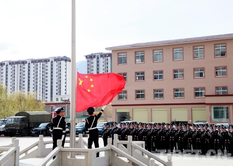 圖為山南邊境管理支隊(duì)機(jī)關(guān)組織開展“升國旗 唱國歌”儀式 攝影:鄭琦山