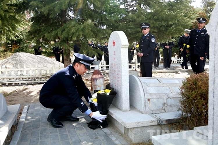 圖為西藏邊檢總站執(zhí)法調(diào)查支隊(duì)民警為旦增阿旺烈士擦拭墓碑、敬獻(xiàn)鮮花