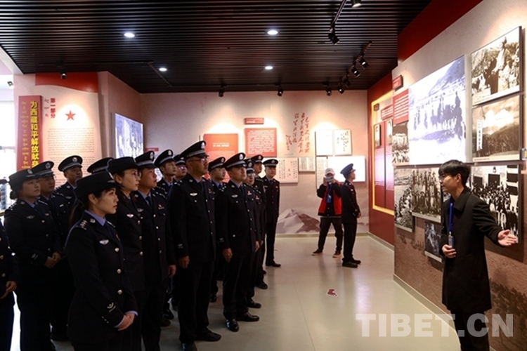 圖為西藏邊檢總站執(zhí)法調(diào)查支隊(duì)民警在烈士紀(jì)念館瞻仰烈士英雄事跡