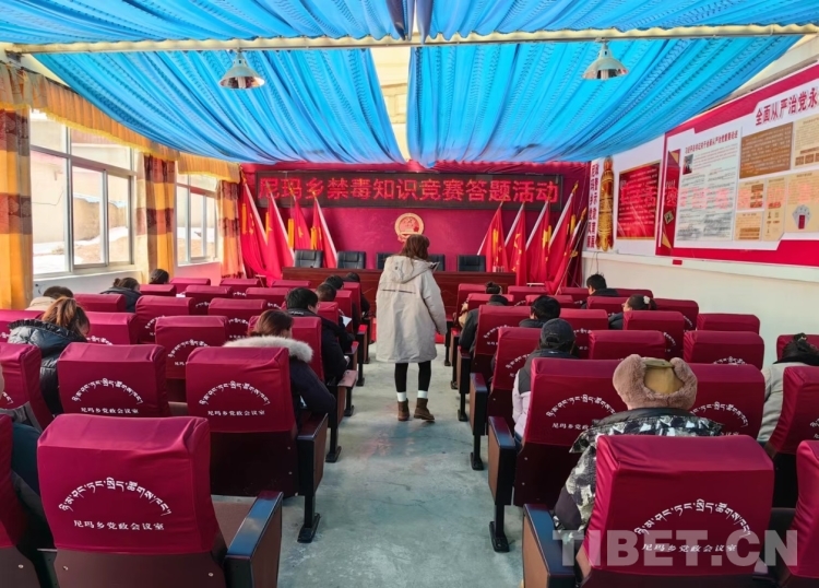 圖為那曲市尼瑪鄉(xiāng)舉辦禁毒知識(shí)競賽活動(dòng)