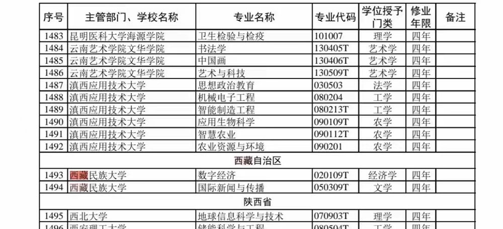 經(jīng)過不懈努力,近日喜報傳來,西藏民族大學財經(jīng)學院獲教育部批準新增數(shù)字經(jīng)濟專業(yè),這是西藏首個數(shù)字經(jīng)濟本科專業(yè),學制四年,授經(jīng)濟學學士學位。