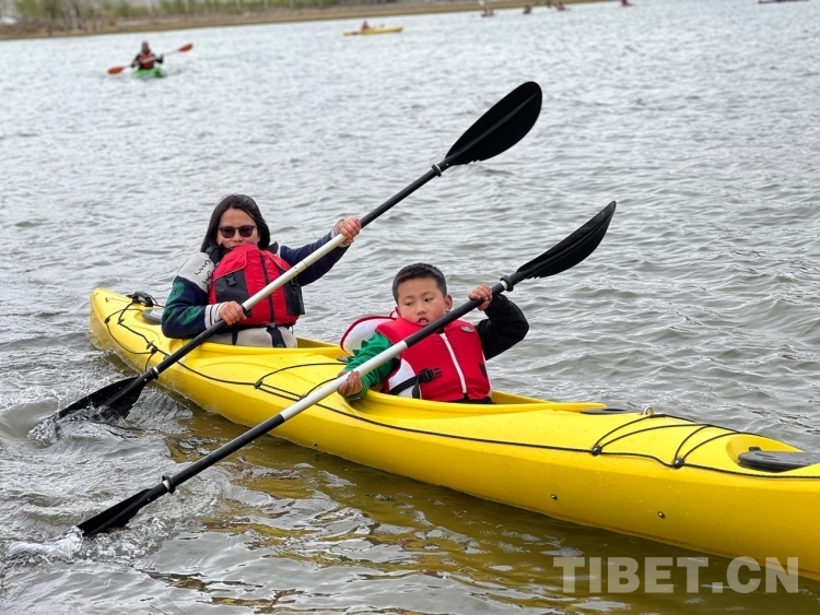圖為家長(zhǎng)帶孩子體驗(yàn)皮劃艇 攝影:德吉卓瑪