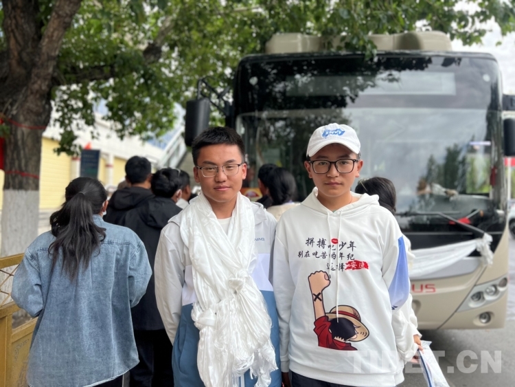 圖為張錦陽和陳思杰結(jié)束考試后在考場外合影留念 攝影:德吉卓瑪