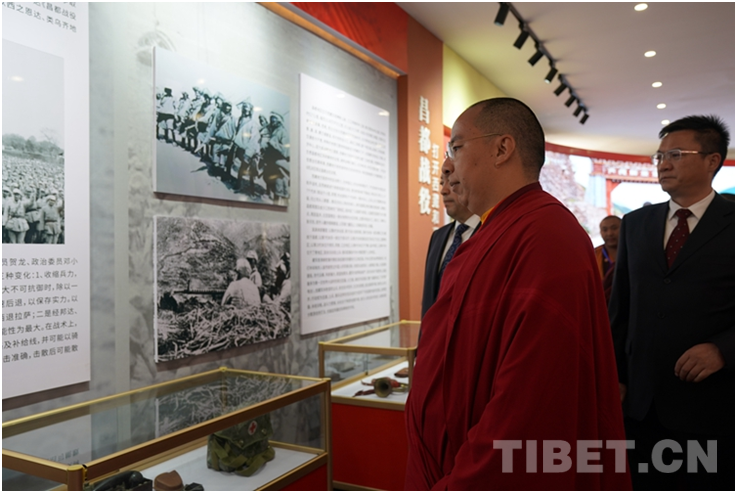 一張張照片、一件件實(shí)物訴說著那段崢嶸歲月,崗?fù)械臍v史,是軍人與百姓、也是各民族的團(tuán)結(jié)史,更是雪域高原換新顏的奮斗史,是紅色種子生根發(fā)芽,蔚然成林的傳承史。參觀中班禪認(rèn)真聽取介紹,深切緬懷革命先烈,感受崗?fù)羞@片熱土獨(dú)特的紅色文化。