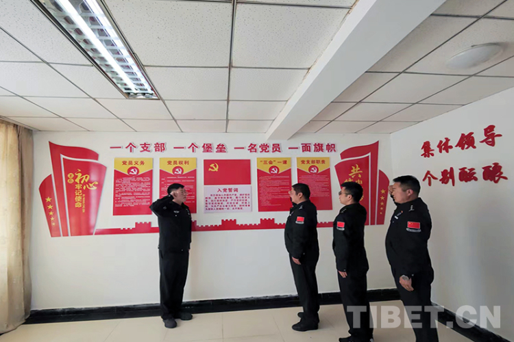 圖為西藏邊檢總站執(zhí)法調(diào)查支隊民警重溫入黨誓詞 攝影:李渠成