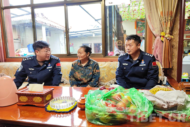 圖為西藏邊檢總站執(zhí)法調(diào)查支隊民警看望慰問轄區(qū)黨員群眾 攝影:李渠成