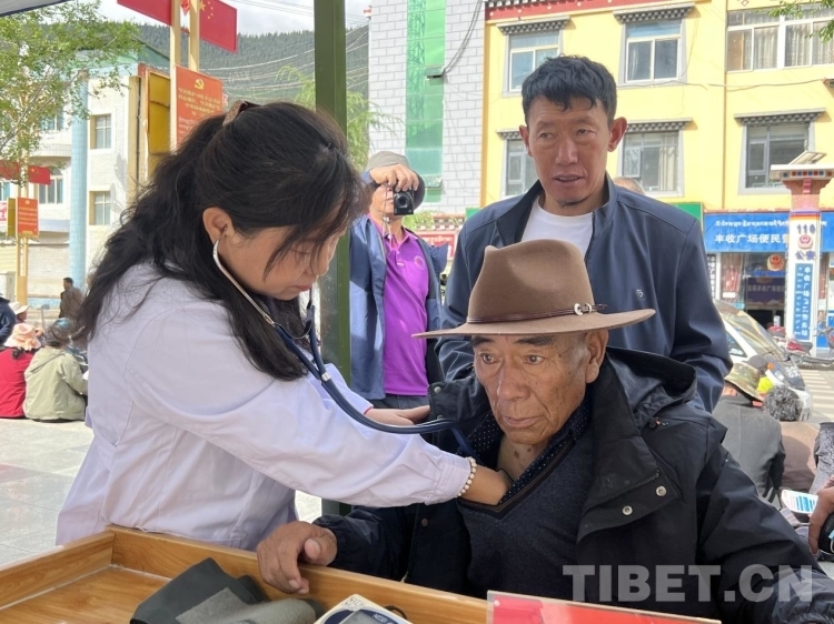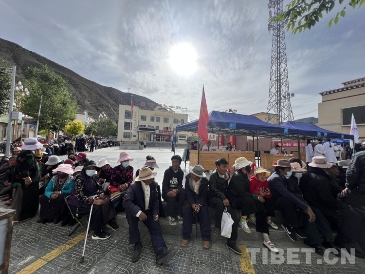 圖為孜托鎮(zhèn)群眾來到縣豐收廣場就醫(yī) 攝影:德吉卓瑪