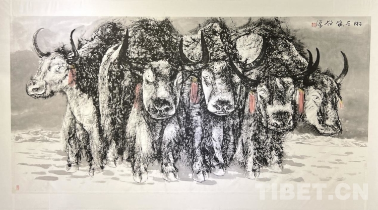 汪仕民介紹,此次《牦牛志·水墨西藏》個人作品展上,除了水墨作品外,還特地安排了一部分去年疫情封控期間的牦牛畫作和系列風景作品配合這次的展出,希望特殊時期的作品與這次牦牛水墨系列作品能給拉薩市民帶來一份愜意,和饕鬄般美的享受盛宴?!拔乙蚕Mㄟ^這次兩百余幅畫作的展出,陶冶豐富拉薩的情操與文化生活,也為西藏文化藝術(shù)發(fā)展盡一份綿力?!蓖羰嗣裾f。