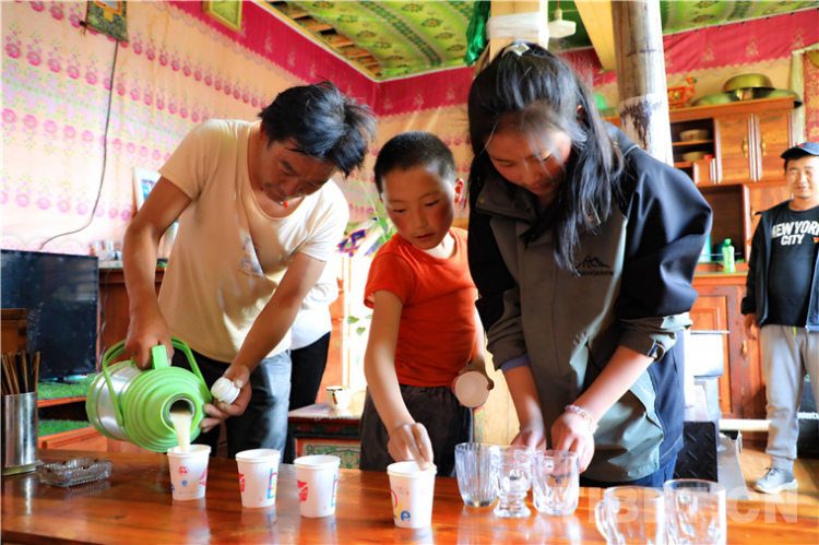 在另一戶村民家里,我們見到了德吉拉姆姐弟倆。姐弟倆非常有禮貌又主動(dòng)熱情地為我們準(zhǔn)備酥油茶、讓座、指路,顯然是父母的“得力小助手”。他們做起事來一板一眼、舉止落落大方,給我們留下很深刻的印象。