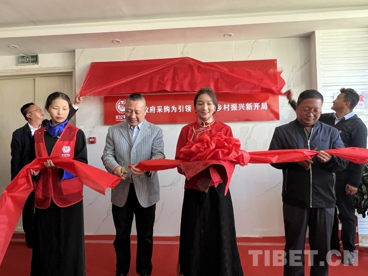 圖為相關(guān)領(lǐng)導(dǎo)為脫貧地區(qū)農(nóng)副產(chǎn)品網(wǎng)絡(luò)銷(xiāo)售平臺(tái)(簡(jiǎn)稱(chēng):832平臺(tái))西藏區(qū)域服務(wù)中心揭牌剪彩 攝影:德吉卓瑪