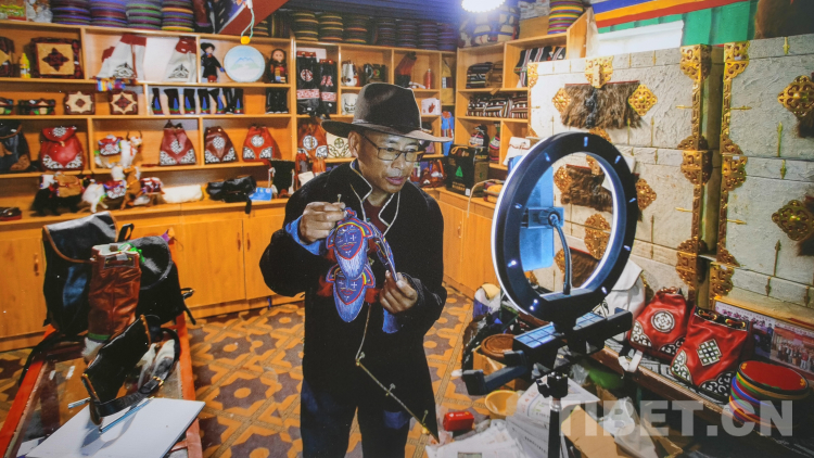 圖為第十六屆西藏“珠穆朗瑪”攝影大展上攝影家扎頓所參展的《謝通門縣皮具電商網(wǎng)紅》 翻拍:王淑