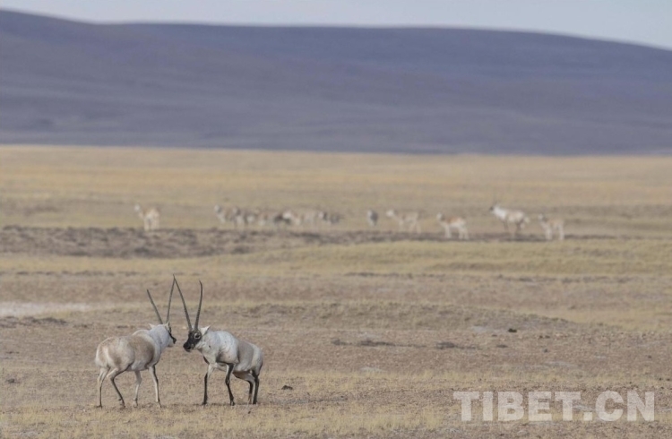 圖為羌塘自然保護區(qū)內(nèi),正在決斗的兩只強壯的公藏羚羊。 攝影:達瓦次仁