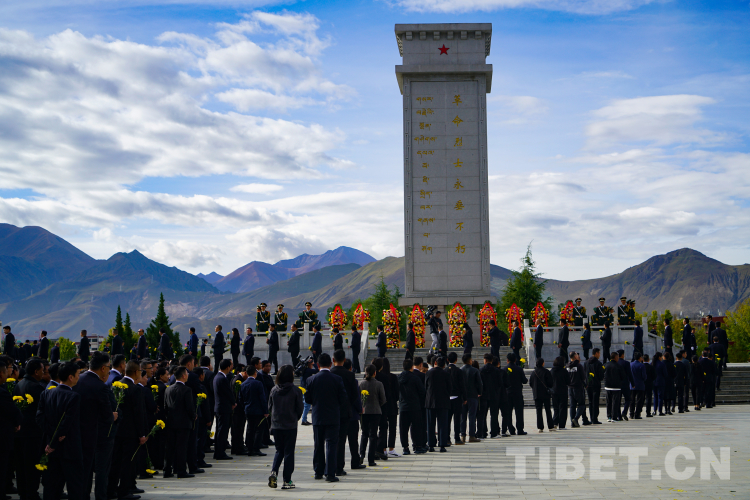 圖為西藏自治區(qū)黨政軍領(lǐng)導(dǎo)同全區(qū)各族各界干部群眾代表一起,出席向烈士敬獻(xiàn)花籃儀式。 攝影:趙振宇