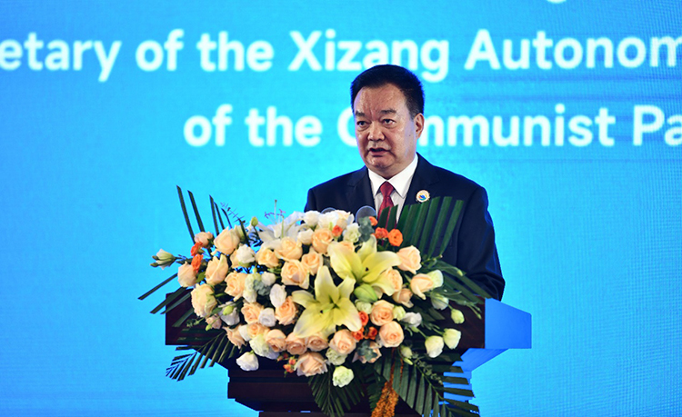 西藏自治區(qū)黨委書記王君正致辭,西藏自治區(qū)黨委副書記、自治區(qū)主席嚴金海宣布論壇開幕。