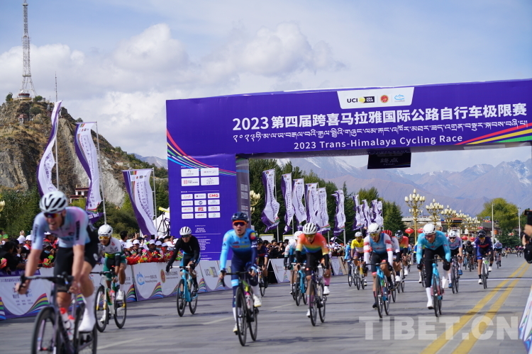 中國西藏網訊 騎行最美公路,環(huán)抱喜馬拉雅。10月17日上午,2023第四屆跨喜馬拉雅國際公路自行車極限賽第三賽段計時競速賽在拉薩鳴槍開賽。來自世界各地17支自行車隊100余名運動員在西藏首府城市拉薩市進行第三賽段(92.8公里)拉薩繞圈賽。