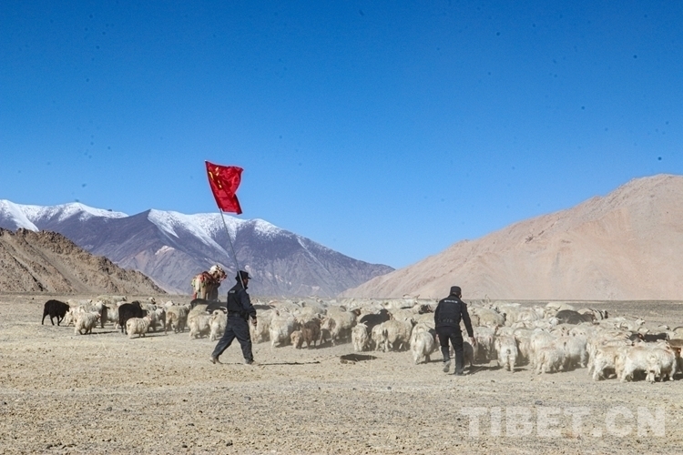 圖為阿里邊境管理支隊(duì)日土邊境派出所民警組成護(hù)牧隊(duì)幫助牧民轉(zhuǎn)場(chǎng)