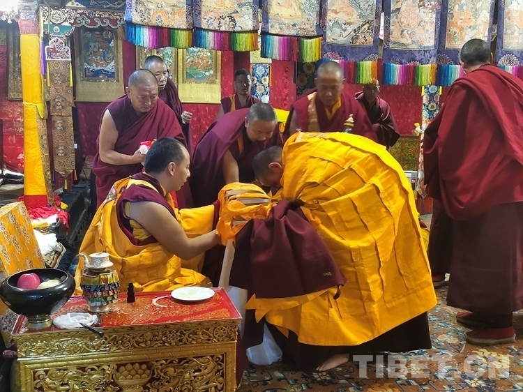 中國西藏網(wǎng)訊 11月4日,即藏歷九月二十二日是藏傳佛教傳統(tǒng)的“降神節(jié)”,降神節(jié)藏語稱“拉波堆慶”。在這特殊的日子里,全國政協(xié)常委、中國佛教協(xié)會副會長、中國佛協(xié)西藏分會會長班禪額爾德尼·確吉杰布,為日喀則市江孜縣重孜寺生欽·旦巴熱杰活佛授予比丘戒暨為扎什倫布寺部分年輕僧人傳授沙彌戒儀式在扎什倫布寺拉讓殿舉行。