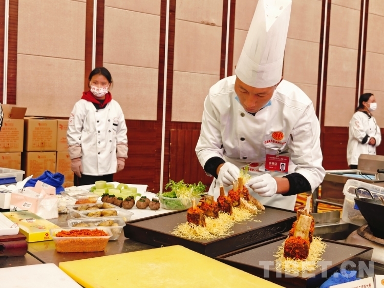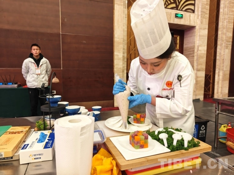獨(dú)具藏民族特色和西藏本土特點(diǎn)的藏式烹調(diào)比賽現(xiàn)場(chǎng),參賽選手們分三輪進(jìn)行角逐,每位參賽選手要在規(guī)定時(shí)間內(nèi)獨(dú)立完成2道使用藏式烹飪手法或西藏特色食材制作的菜品,1道指定菜品和1道自選菜品。