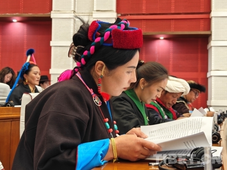 圖為開幕會現(xiàn)場委員在認真審閱藏文版會議資料 攝影:次旦拉姆