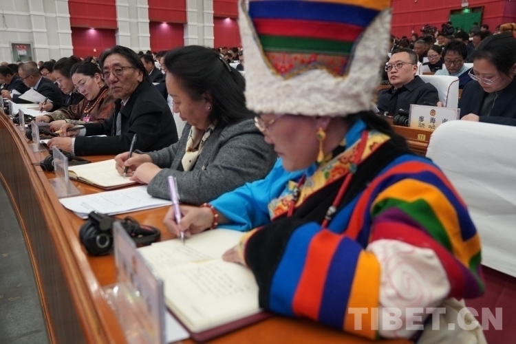 圖為開幕會現(xiàn)場委員在認真聽取各項報告 攝影:次旦拉姆