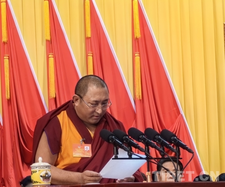 圖為宗教界政協(xié)委員拉巴次仁發(fā)言 攝影:王淑