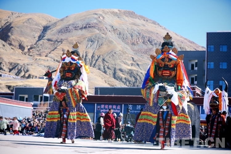 圖為1月10日,西藏薩迦寺舉行一年一度的“堆慶”宗教神舞表演