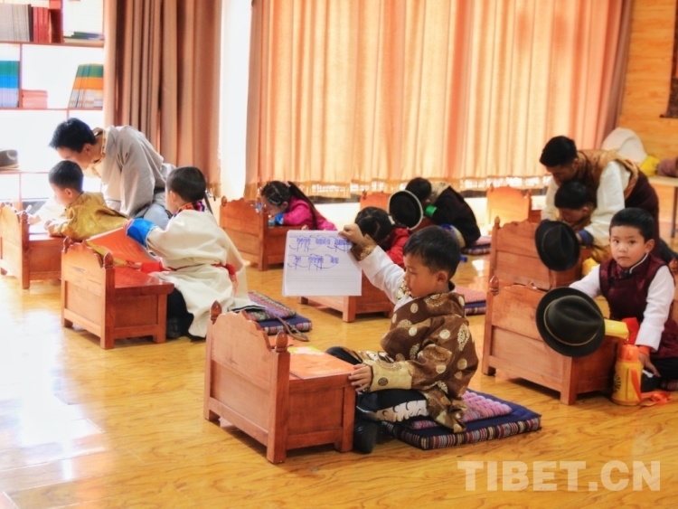 圖為在藏文書法課上認(rèn)真寫字的小朋友們