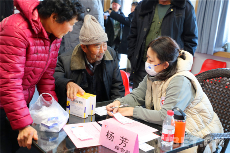 在紅星村黨群活動中心臨時義診室寬敞的大堂里,村民們在工作人員有條不紊的分診下,很快找到醫(yī)生進(jìn)行問診,并按照醫(yī)囑領(lǐng)到了免費的藥品。
