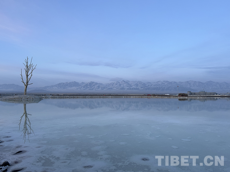 茶卡鹽湖是固液并存的鹵水湖,蒙古語(yǔ)稱“達(dá)布遜沃爾”,意為青色的海,此地也以盛產(chǎn)大青鹽馳名,岸邊淺灘隨處可見析出的白色鹽晶。湖泊位于柴達(dá)木盆地最東段,地勢(shì)相對(duì)低洼開闊,北依祁連山支脈完顏通布山,南靠昆侖山支脈旺尕秀山,兩山常年被積雪覆蓋,形成雪峰與湖泊珠璧交輝的獨(dú)特高原風(fēng)光。(中國(guó)西藏網(wǎng) 文/李一凡 張萌萌 龍真多吉)