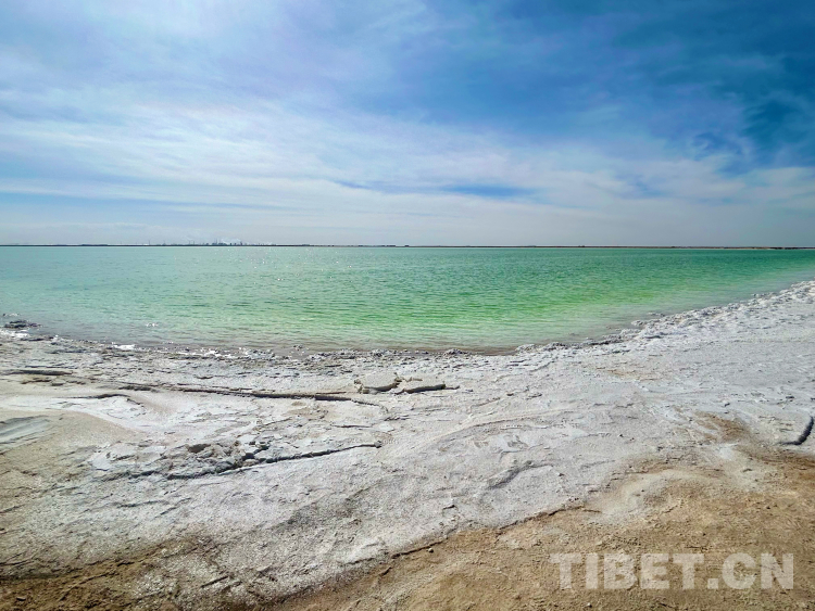 這里是鹽的天堂。湖水是高濃度的鹵水,蘊(yùn)藏著極其豐富的氯化鈉、氯化鉀、氯化鎂等無機(jī)鹽。厚度近20米的堅硬鹽蓋構(gòu)成天然的鹽橋,旁無護(hù)欄,下無橋墩,更無流水。我們的汽車疾馳而過,毫無顛簸之感。湖岸邊有大量析出的鹽晶,形成厚實的白色鹽灘,在高原陽光的直射下發(fā)出晃眼的白光。(中國西藏網(wǎng) 文/李一凡 龍真多吉 張萌萌)