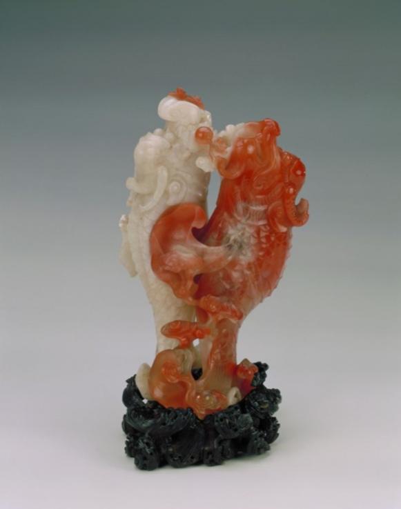圖為紅白瑪瑙巧做雙魚(yú)龍花插 圖片來(lái)源:故宮博物院